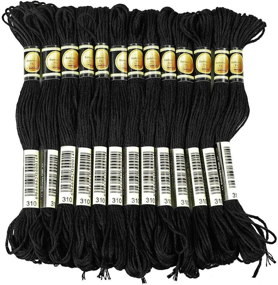 Black Embroidery Floss, 24 Skeins Embroidery Thread Friendship Bracelet String, Cross Stitch Threads Hair Wrap Yarn