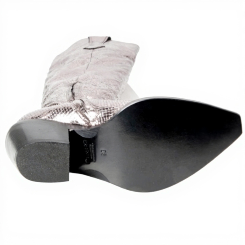 Ce modèle est disponible en tailles européennes de 35 à 41. La couleur “Zzi Canne Sans Fusil” apporte une nuance neutre et versatile. Conçue pour un ajustement confortable, la botte épouse la forme de la jambe sans serrer. Le matériau simili cuir assure légèreté et durabilité.