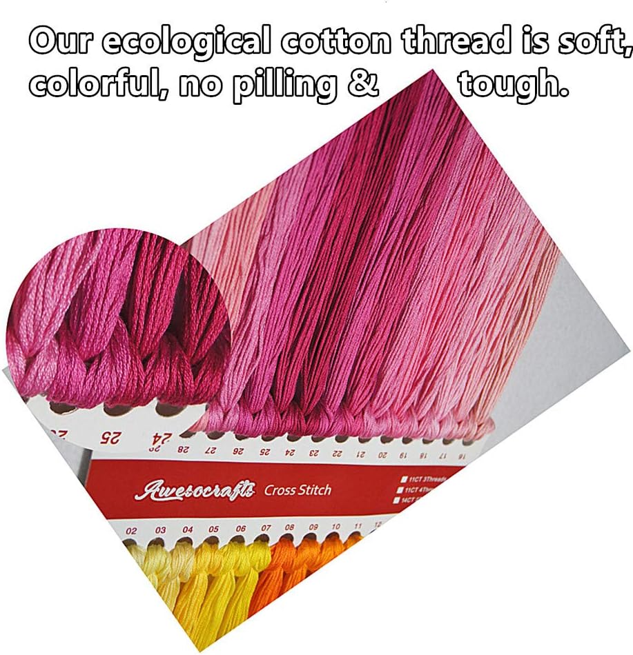 DMC Embroidery Floss Pack Popular Colors, Embroidery Thread Kit Include 36 Assorted Color Bundle with DMC Mouline Cotton White/Black and Cross Stitch Hand Needles Size 26.-0