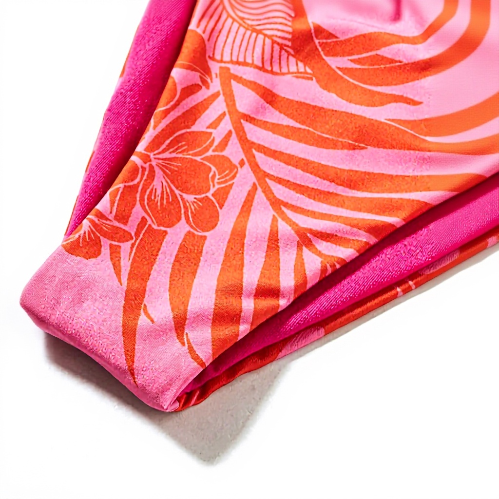 Oui, le motif est imprimé avec des techniques durables qui limitent la décoloration, même après une exposition répétée à l’eau et aux mouvements, pour conserver son éclat tropical.