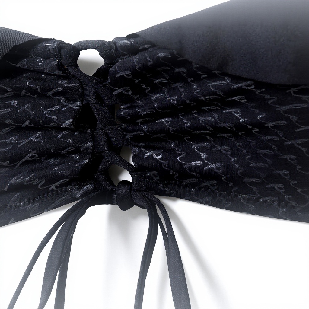 - Style élégant avec des ruchés et un logo discret pour une touche de sophistication.