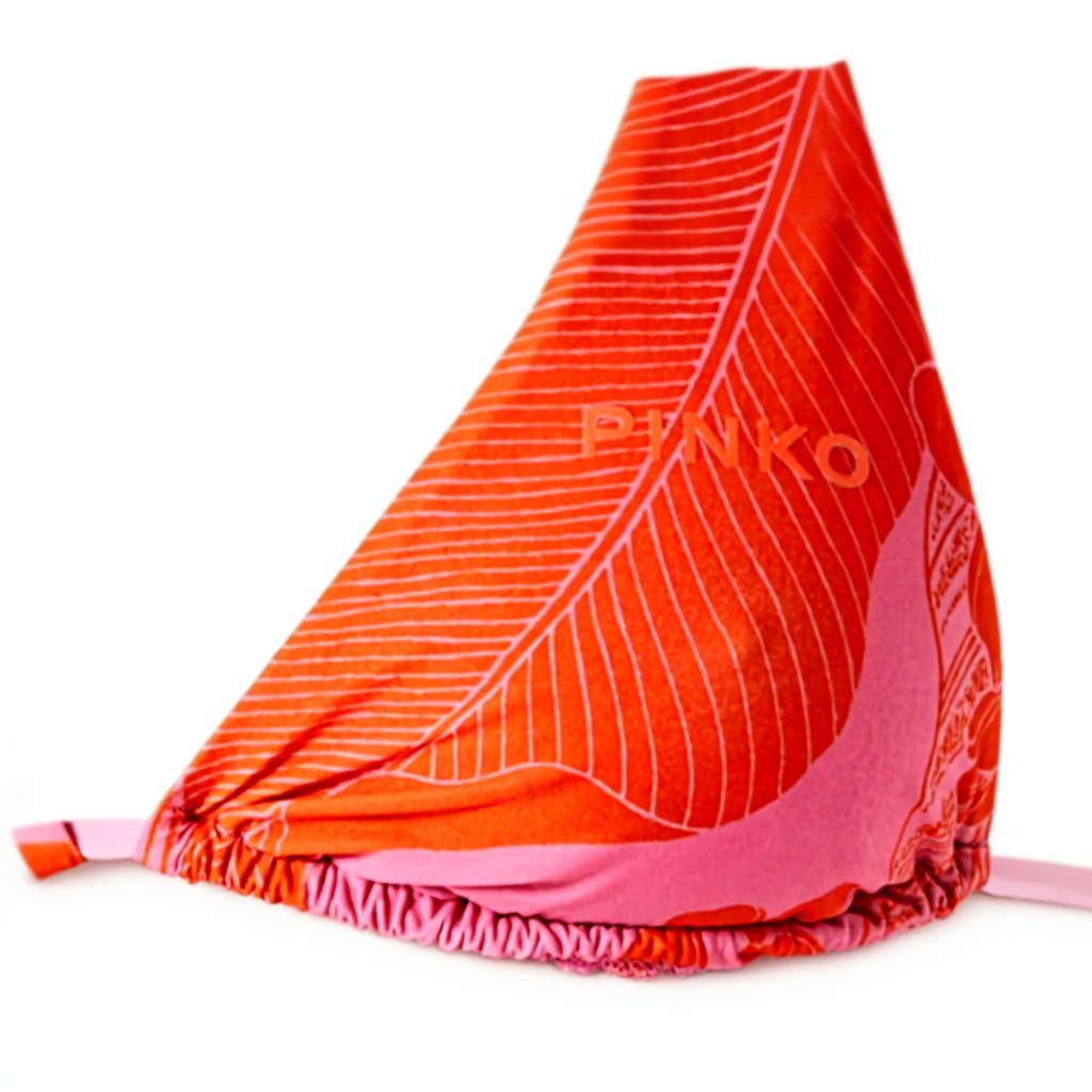 Le modèle est disponible en tailles XS et M, avec une couleur multicolore rose et orange. Fabriqué par Pinko, il porte le numéro de modèle 101074_A0SG et pèse léger pour un port agréable. Le matériau jerse assure une rapidité de séchage et une durabilité face au chlore ou au sel.