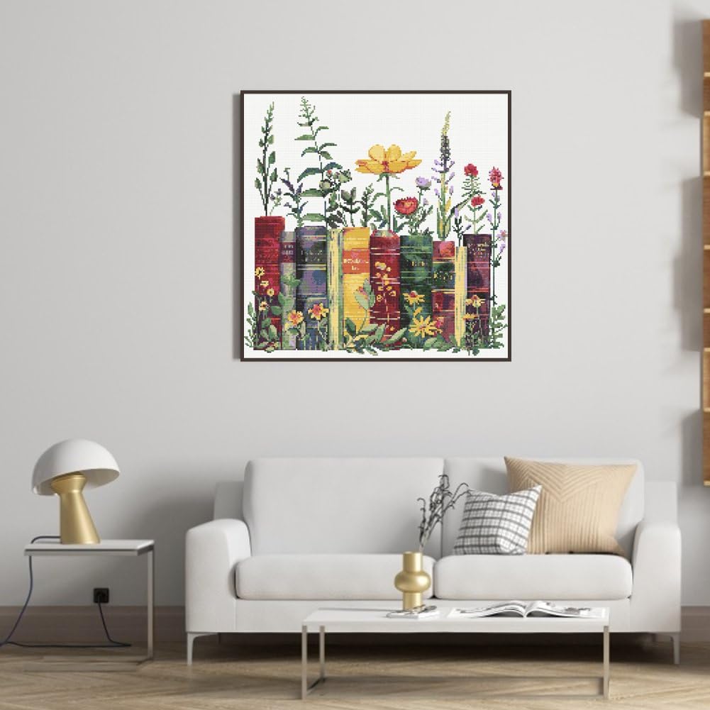 KYOQFVN Stamped Cross Stitch Kits – Flower Embroidery Starter Kit for Adult Beginners, 11CT Needlepoint Cross-Stitch Patterns Dimensions Kit Arts and Crafts 14×14inch