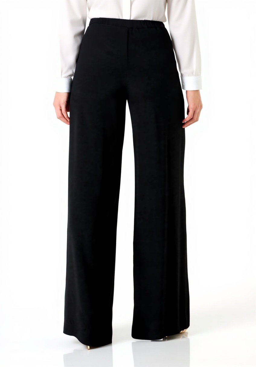 Ce pantalon est disponible en tailles 36 et 44, avec des options de couleur Amazônia (vert naturel) et Nero Limousine (noir intense). Le modèle numéro 100757_A0TP pèse environ 300 grammes, assurant une portabilité légère. La composition en crêpe maroc garantit une durabilité et un entretien facile.