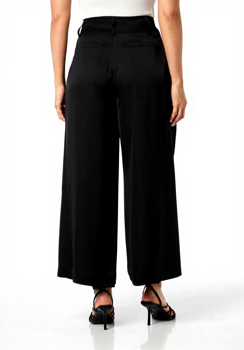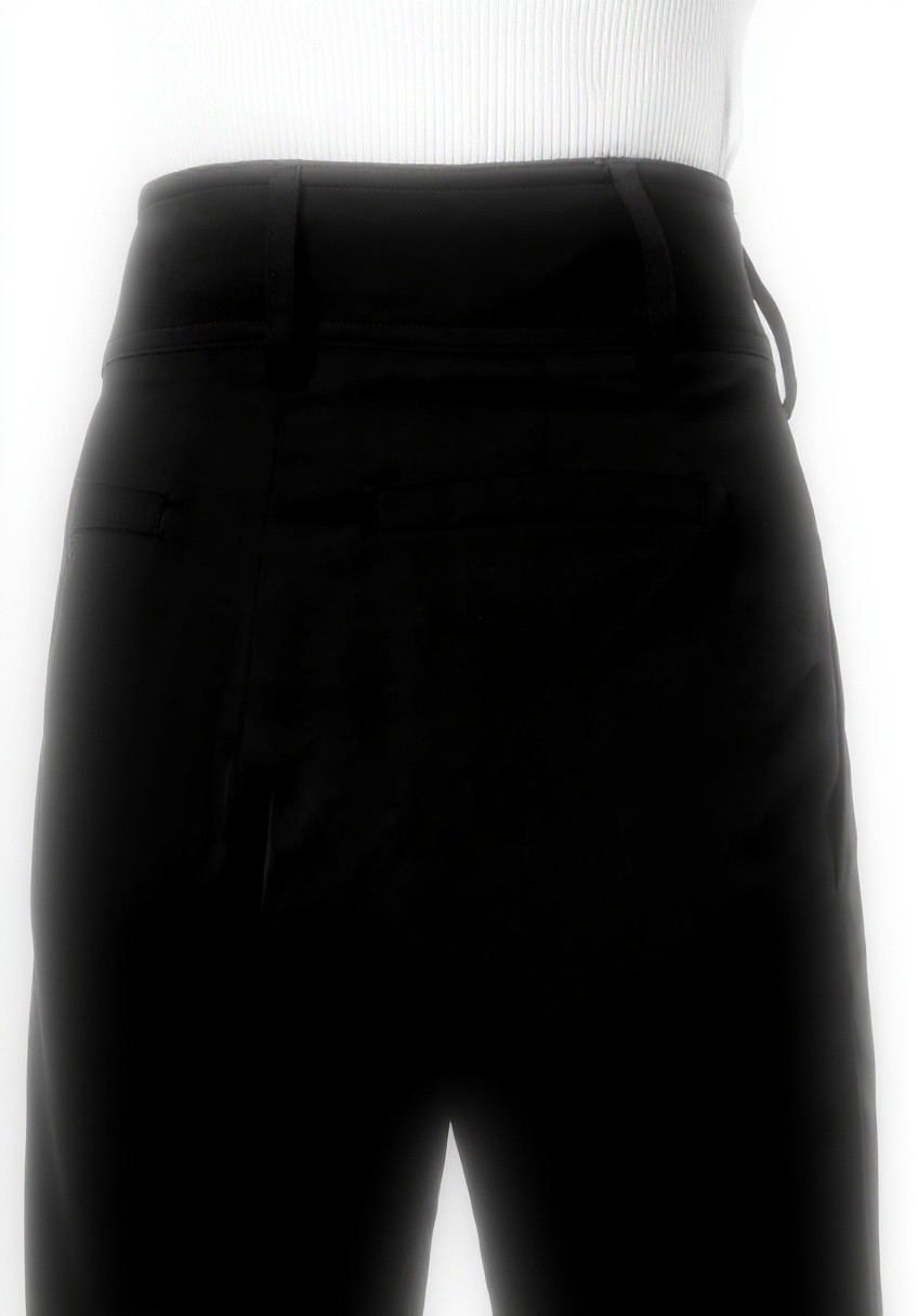 Le satin mat confère à ce pantalon une profondeur visuelle unique, captant subtilement la lumière sans effet brillant excessif. La coupe à viande épouse les formes avec délicatesse, créant une silhouette fluide et féminine. Le noir berline, plus chaleureux qu’un noir neutre, ajoute une touche de sophistication discrète. On remarque la qualité de la confection dans les coutures précises et le tombé naturel du tissu.